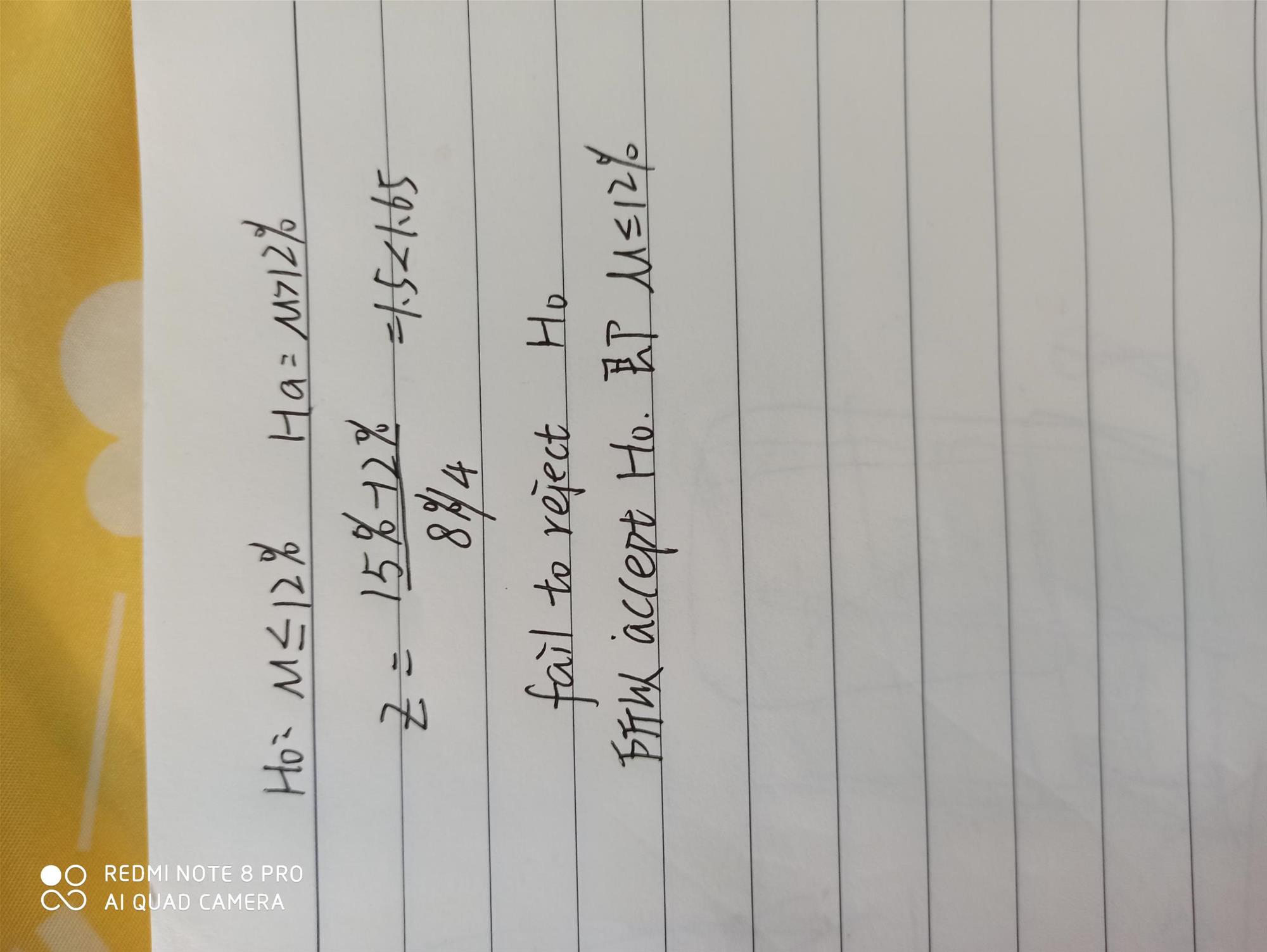 不太理解, H0是15-12>=0, 然后算出来1.5小与1.65那应该是fail reject, 那结论应该是active 的higher than portfolio