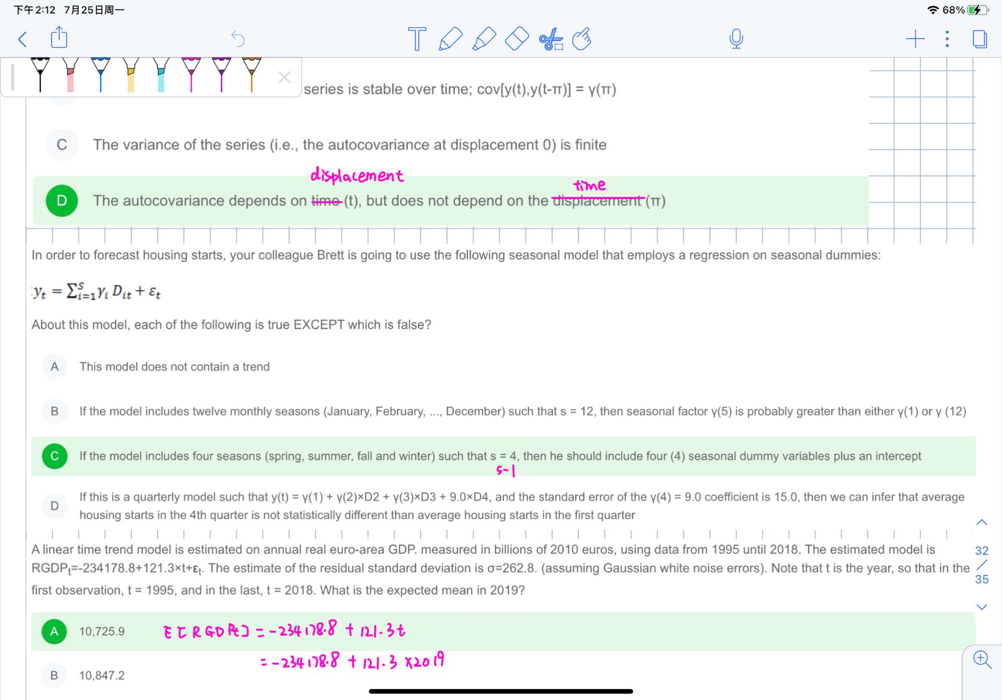 如果这是一个季度模型,如y(t)=γ(1)+γ(2)×D2+γ(3)×D3+9.0×D4,而γ(4)=9.0系数的标准误差为15.0,那么我们可以推断,第四季度的平均住房开工率与第一季度的平均住房开工率没有统计学差异,因为统计量t=9/15=0.6是不显著的