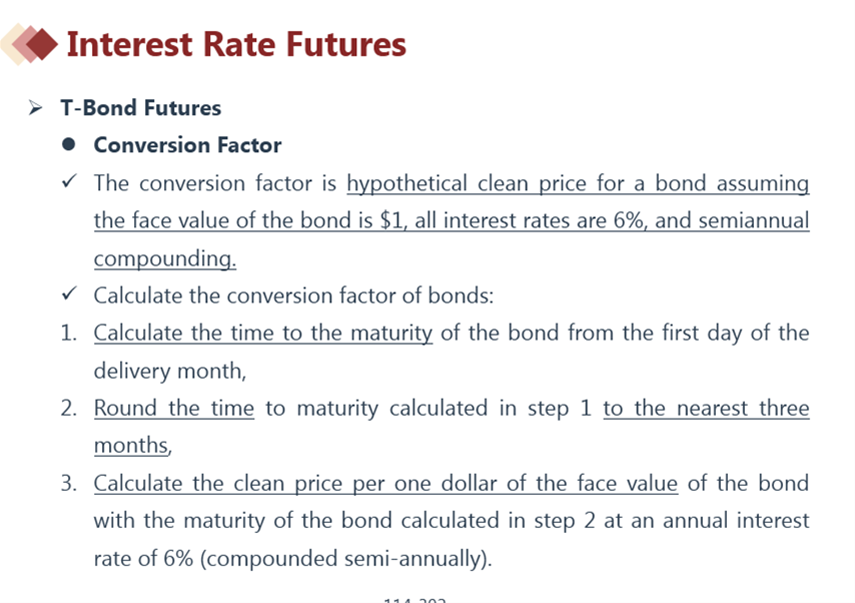 债券的转换因子是这样确定的:假定所有期限的利率均为年利率6%(每半年复利一次)。