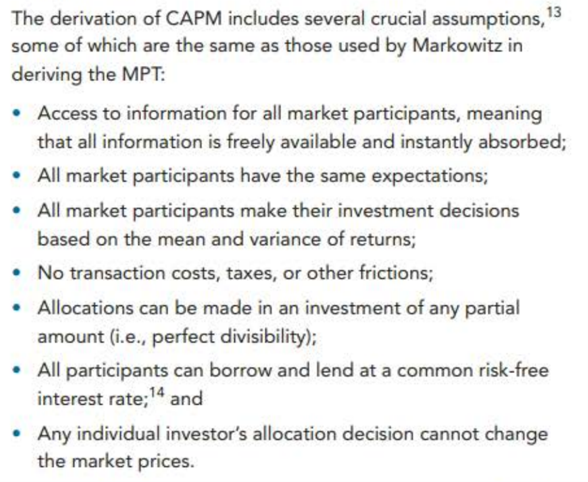 CAPM模型是建立在马科维茨理论基础上的,因此也包含马科维茨有效前沿假设,CAPM有更严格的假设,