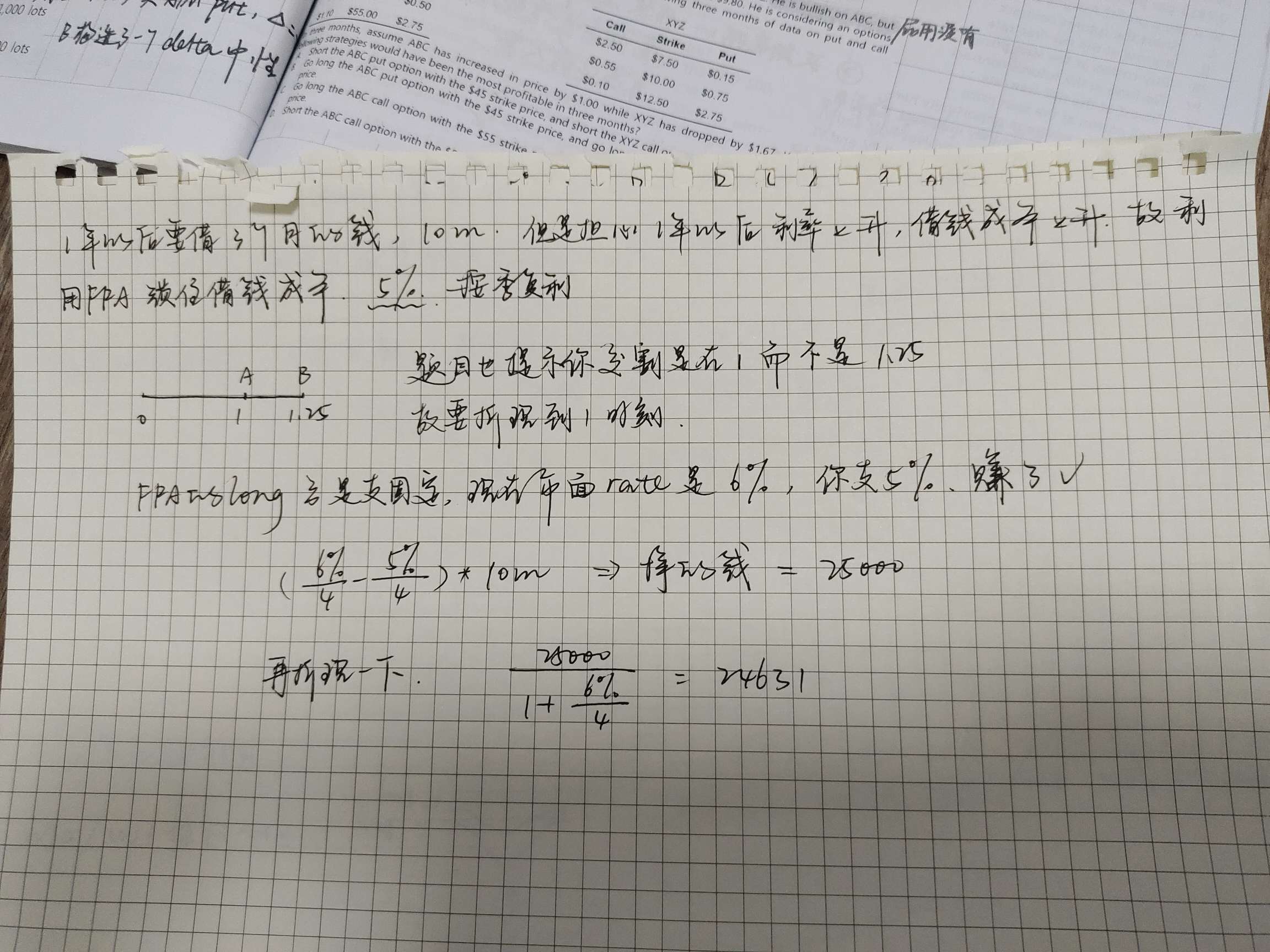所以我会发现,执行FRA会更便宜,对我来说是赚的。赚的部分就是10m*6%*0.25-10m*5%*0.25.