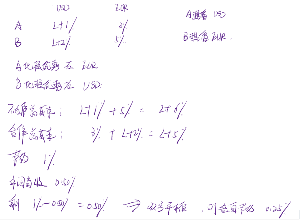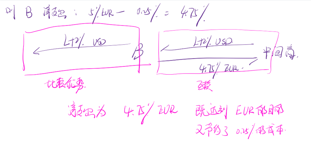 双方利用比较优势去借钱,然后进行互换。从而达到自己的目的。