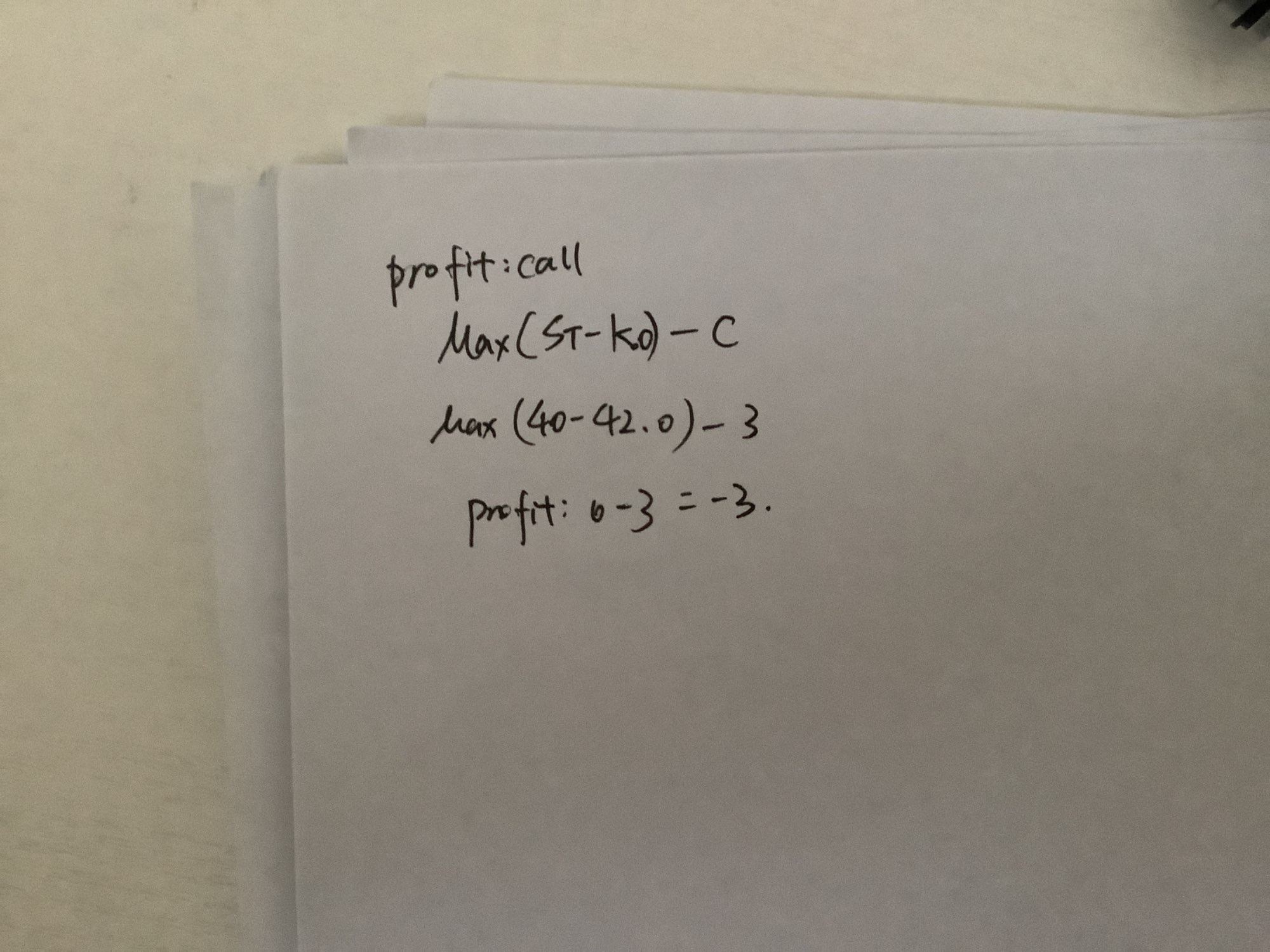 sell call的profit=-max(ST-K, 0)+C=-max(ST-42, 0)+3。