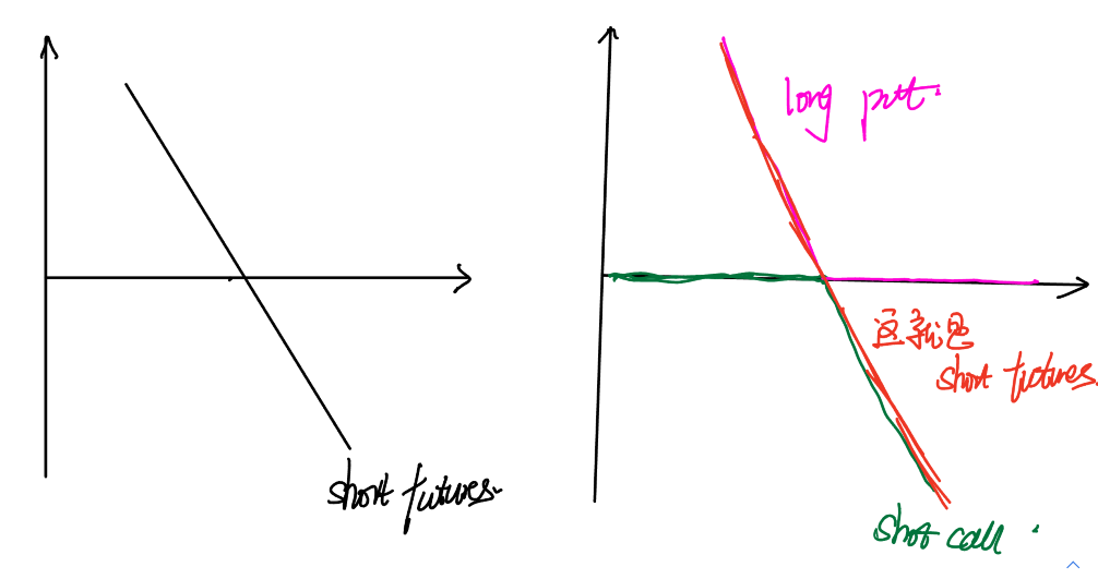 老师是从put call parity的角度,推出C类似short forward。【而short forward和short futures的图像是完全一样的呀】。