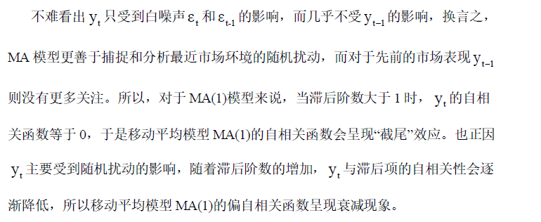 MA模型:自相关系数截尾,偏自相关函数拖尾;