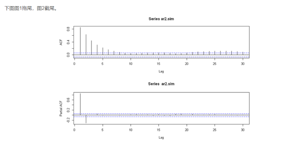 AR模型:自相关系数拖尾,偏自相关系数截尾;