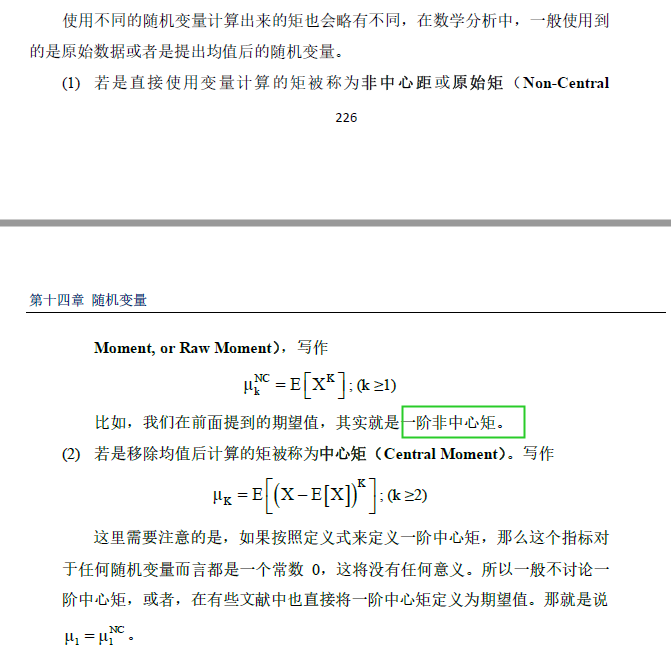 一阶中心矩是不是等于一阶非中心矩?