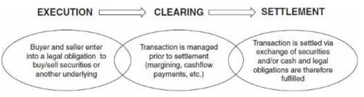 一般来说,流程为:execution执行,clearing清算,settlement 结算。