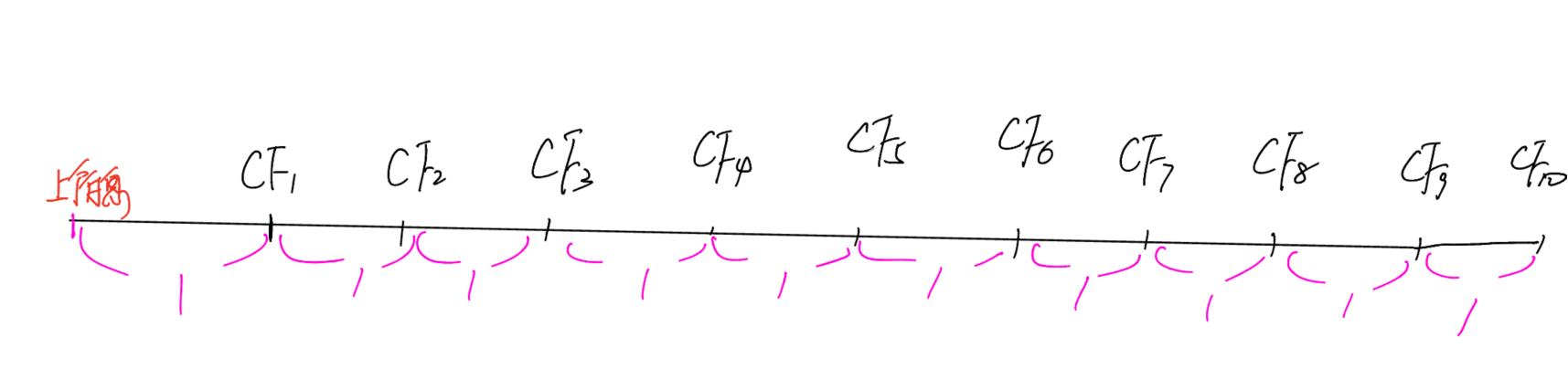 而老师这里只是画出“还有10笔coupon”。并不是完整的“十期”。
