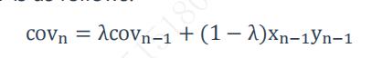 第4个公式,计算n天的协方差,其中,n-1天的cov第一个公式算出来了,X和Y过去一天的收益率,这个题目也有了
