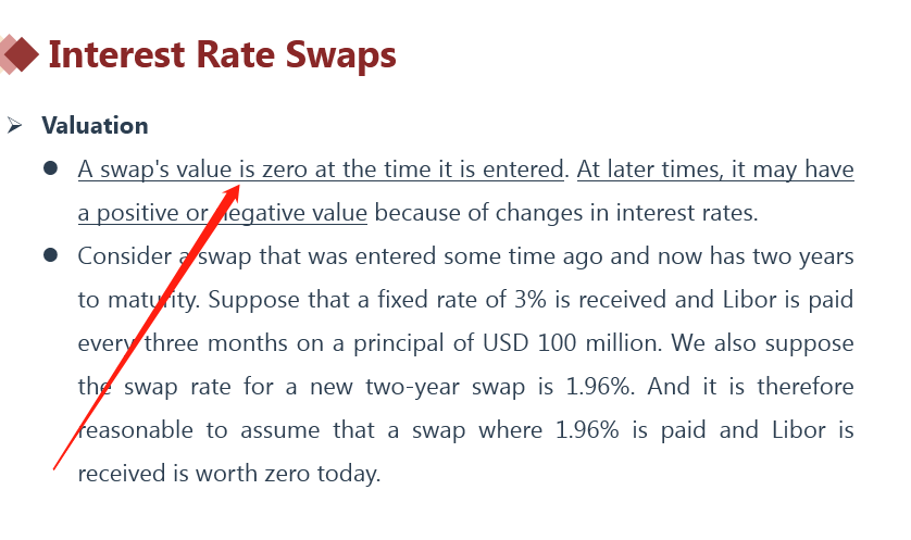 同学你好,这个是规定哈。利率互换在刚签订时价值为0.【此时对双方来说是公平的】