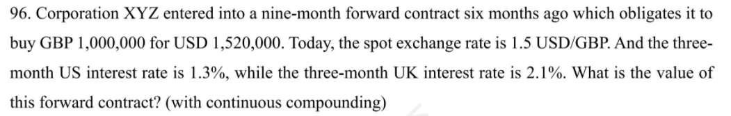 所以1000000个GBP对应的远期价值是-0.023*1m