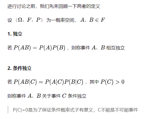 2.条件独立不蕴含独立