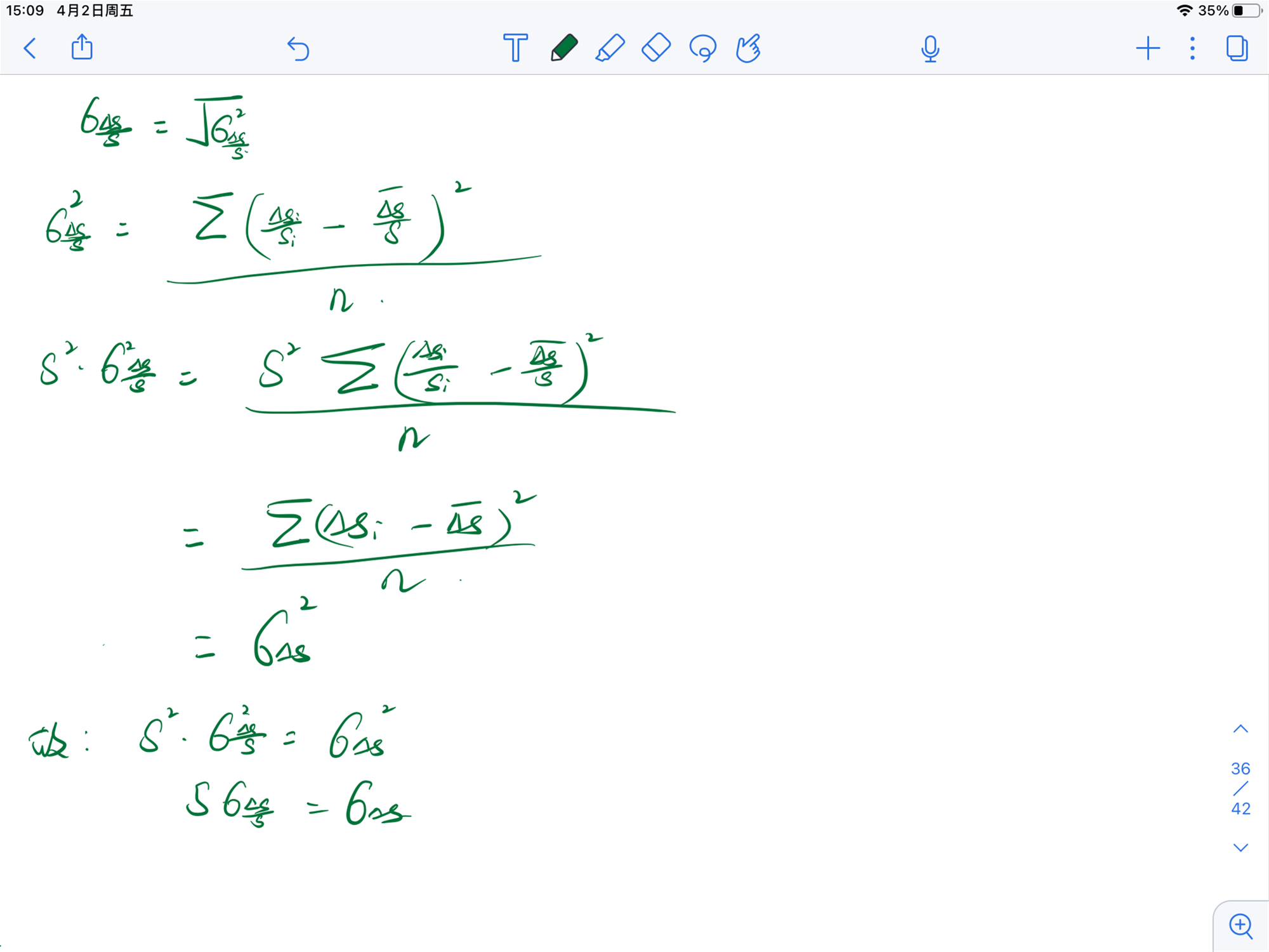 26分30秒,为什么Δs的标准差等于Δs/s的标准差*s?这里应该s是常数才能这么算吧?s应该也是个变量呀?