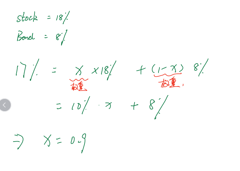 所以可以判断出w点是:0.9的股票+0.1的债券