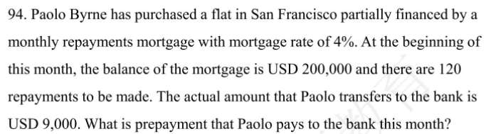 当然了这题是通过本金*4%/12,来计算这一期的应还利息,然后通过“本期实际偿还额、计划偿还本金、计划还的利息”来求解提前偿还本金