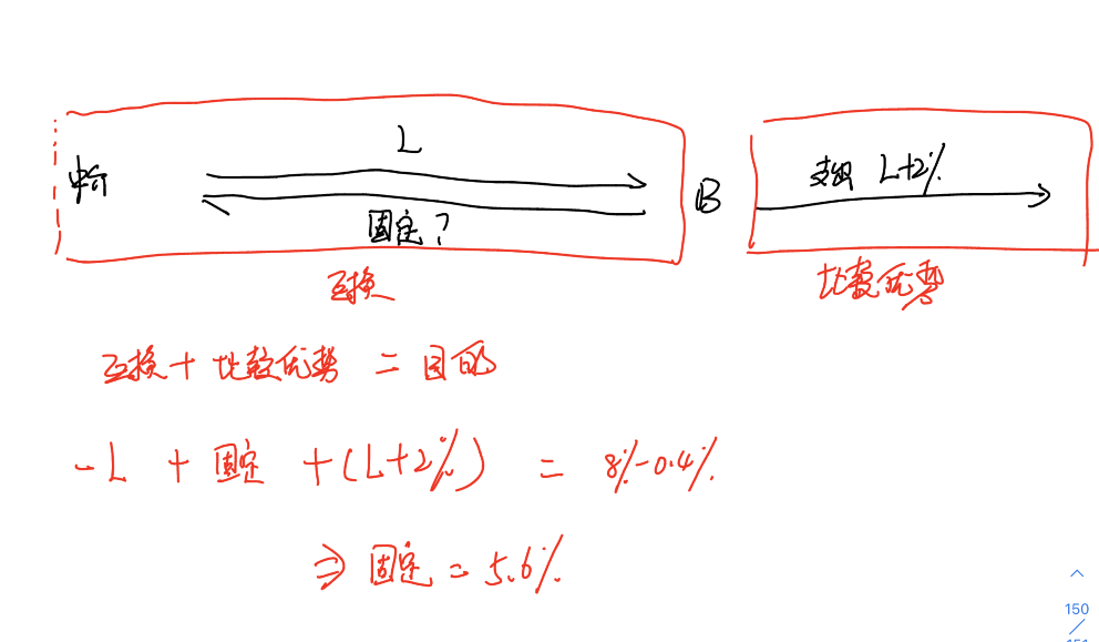 如果双方是按自己的借款意愿去借钱。A的意愿是浮动L+1%;B的意愿在固定8%,这样的话总成本是:L+1%+8%=L+9%.