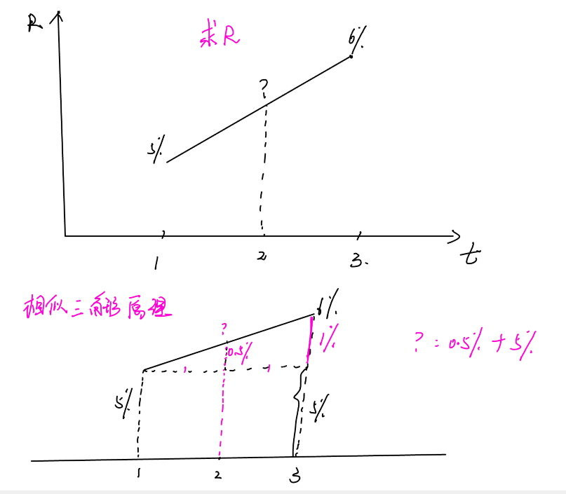 老師,第13題的線性差值法,我不太明白,我看集體後面的答案解析step2的(6%-5%)/2的意思是取第一第三年的平均數,再加回第一年的利率取第二年的,是這樣的意思嗎?如果我用習題後面的答案跟老師所說的,在考試的時候會有誤差嗎?