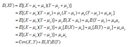 COV(X,Y)=E(XY)-E(X)E(Y)的变形,就变成了:E(XY)=E(X)E(Y)+COV(X,Y)