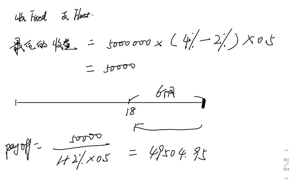 FRA中的固定利率是4%(收),实际是2%(支),所以最后的利息差是:本金*(4%-2%)*0.5.