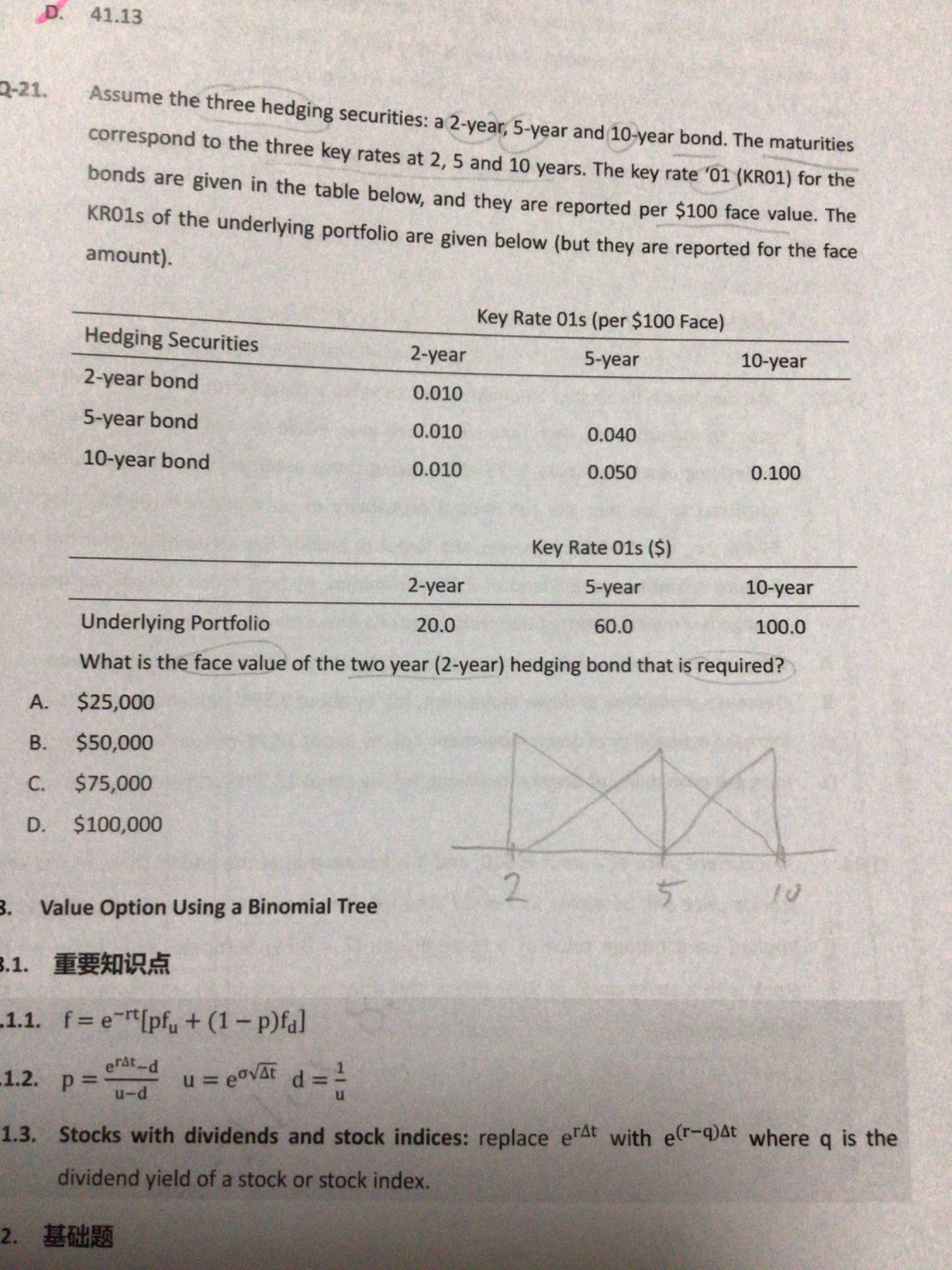 这题的意思是:现在有三个关键利率,2年的关键利率变动会使得2年债券、5年债券、10年债券分别变动0.01元.