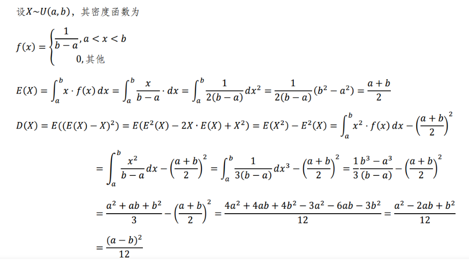 同学,你好,这是连续均匀分布均值和方差的推导过程
