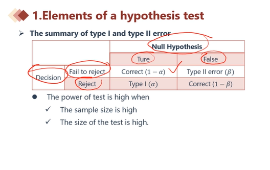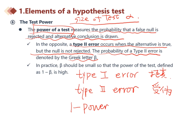 这里你应该听错了,size of test是α,但不是power of test=1-β