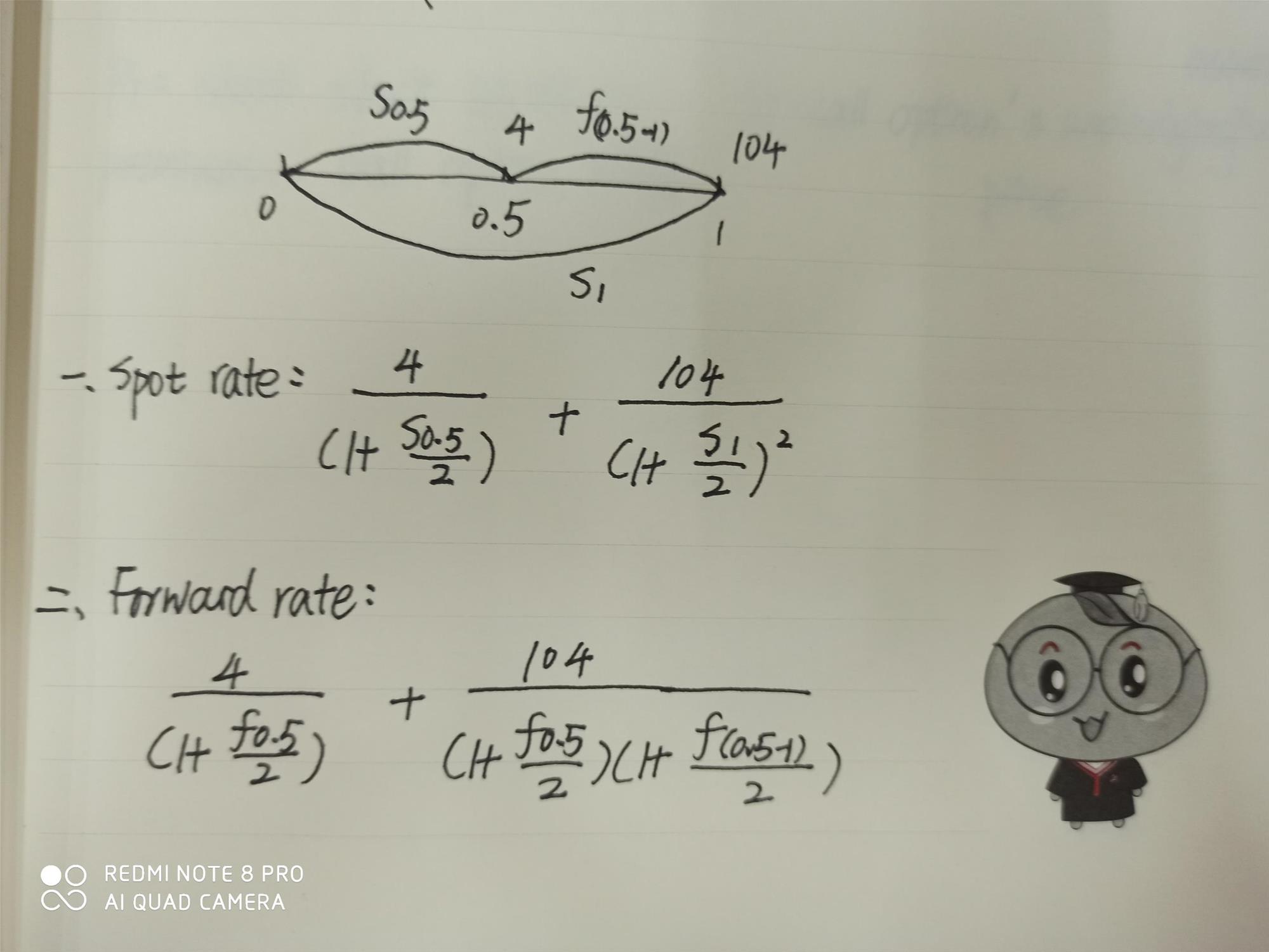 这里的截图,用spot rate和forward rate的分母数字不一样,为什么结果都是1.0657?