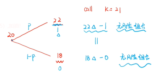 同学,你好,1份股票22元,买了Δ份股票,一共22Δ,short 1 call=-1,无风险组合价格:22Δ-1;1份股票18元,买了Δ份股票,一共18Δ,short 1 call=0,无风险组合价格:18Δ;22Δ-1=18Δ,解方程Δ=0.25