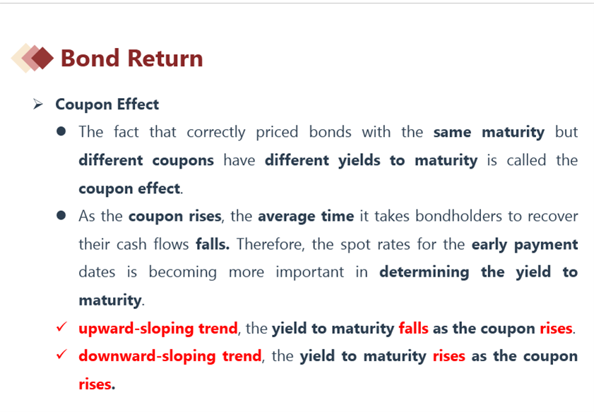 当利率upward sloping:Z1<Z2,Coupon上升,会引起YTM decrease