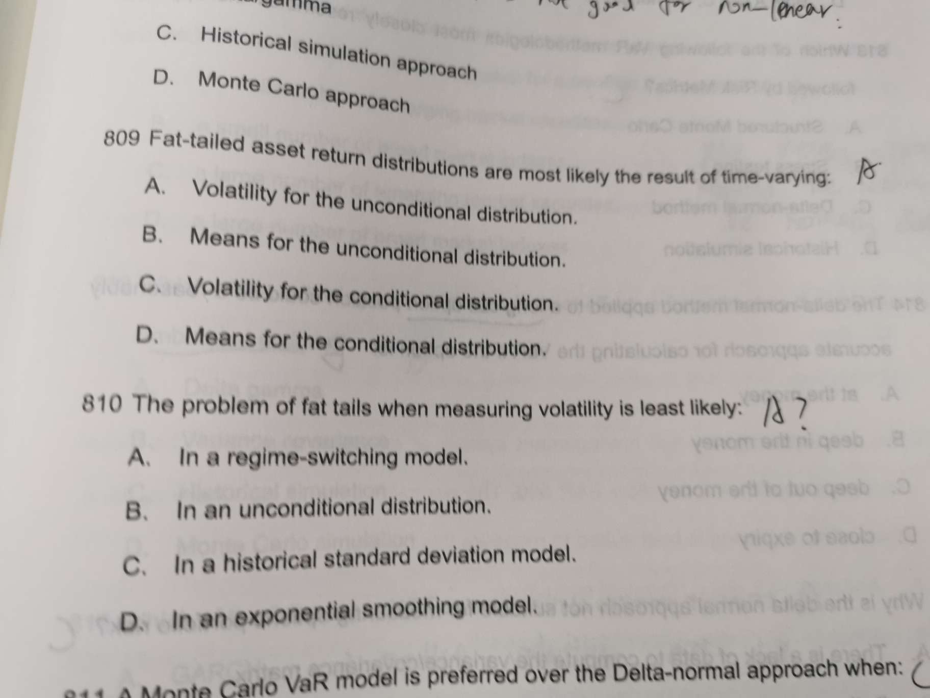 809,在收益为无条件正态的模型中,每天收益的概率分布具有相同的正态分布和相同的标准差