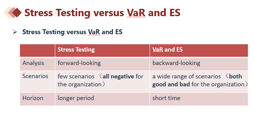 老师可以总结一下哪些测试是可以用历史数据的,哪些必须用前瞻性,未来没发生过的场景的,情景分析,和var值测算属于哪种