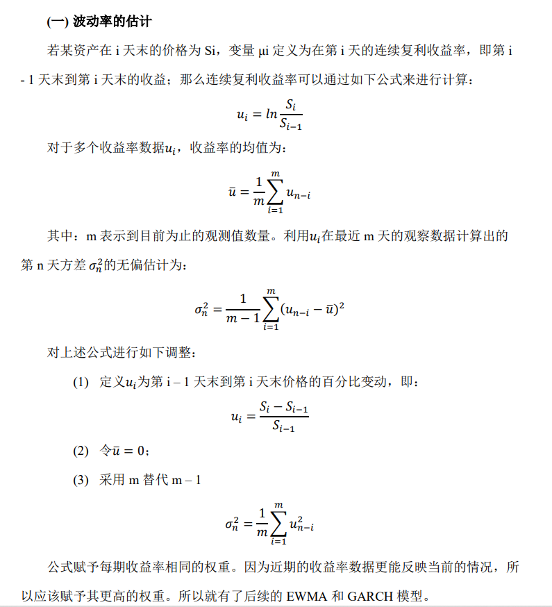 请问老师这里的波动率计算公式是什么意思呢?volatility estimated for day n from the return on the m previous days。