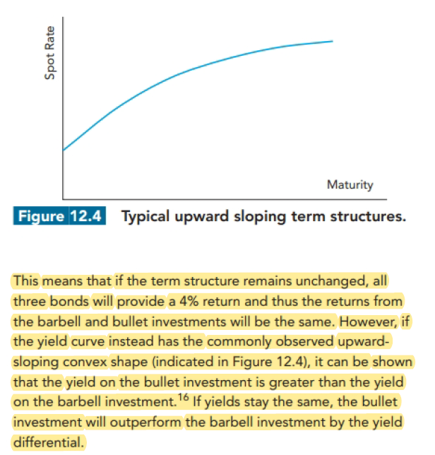 如果利率是不变的,则bullet表现更好,因为bullet的凸性小,到期收益率更高