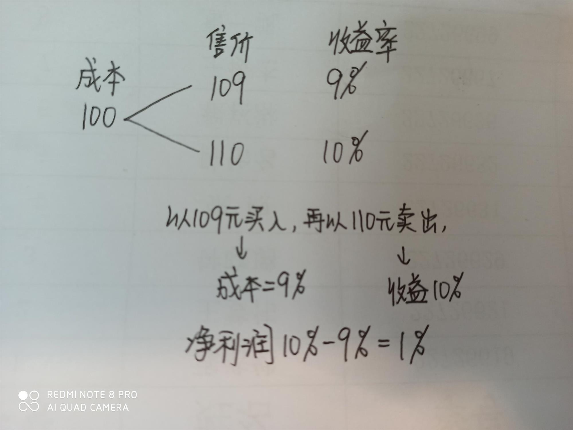 ”这里Q的收益低,P的收益高,所以我们买入低的,即Q,卖出收益高的,即P“。我觉得还应该是卖出收益低的Q,这样相当于我们把低收益给了别人;然后买入收益高的P,这样相当于我们把高收益给了自己。这样才能套利1%吧?而且收益低代表价格更贵,卖出收益低的Q相当于高卖,买入收益高的P相当于低买。这是我的理解,我还是不明白为什么这里买入低收益卖出高收益能赚钱。