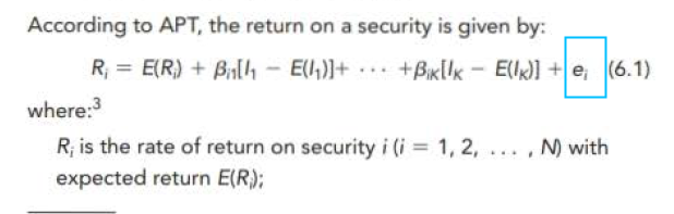 同学,你好,APT模型是包含残差项的,均值为0,方差恒定,是一个白噪声。