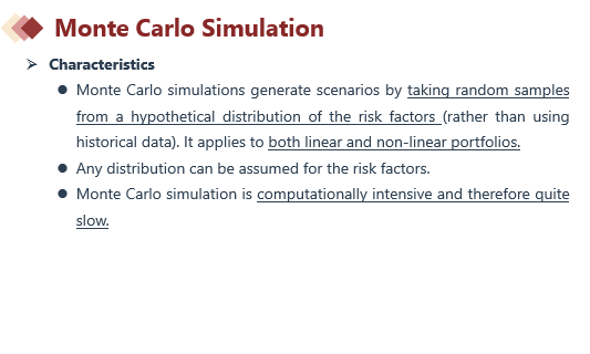 B这个描述的不是蒙特卡洛模拟的缺点,市场的结构性变化使得现在与过去有很大不同,这是使用back test出现的具体问题。