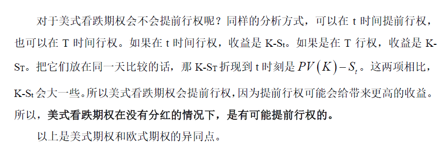 1、美式看跌期权也是会提前行权的,解释如下图