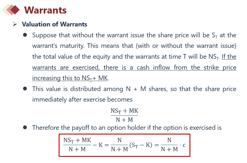 这个式子不是warrant的payoff吗?为什么是warrant的cost呢?(上个ppt写的是payoff)