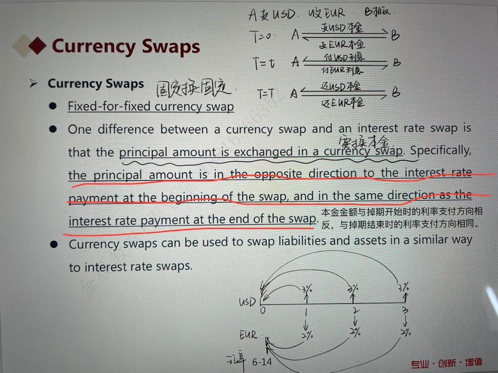 0时刻支出USD本金,T时刻收到USD本金,这就是opposite。