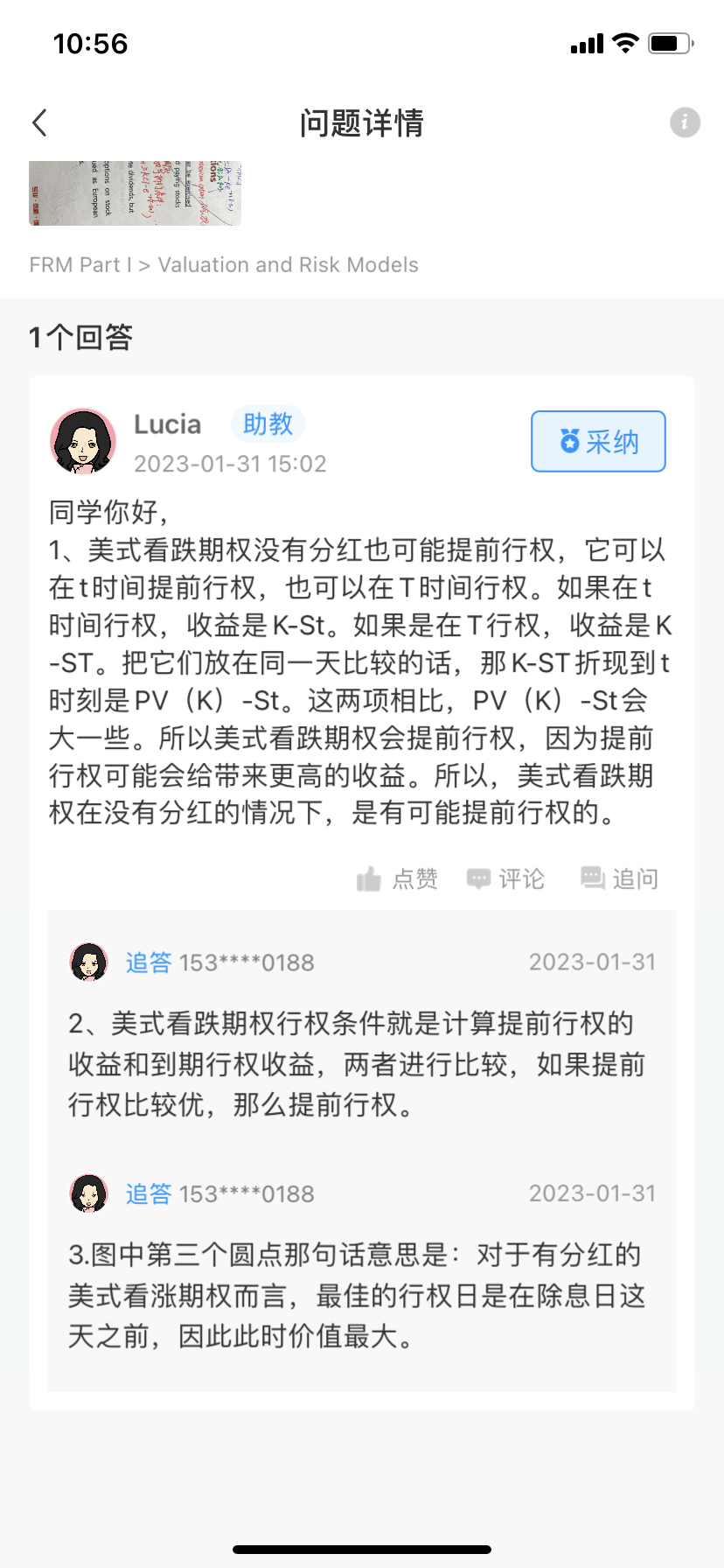3.图中第三个圆点那句话意思是:对于有分红的美式看涨期权而言,最佳的行权日是在除息日这天之前,因此此时价值最大。