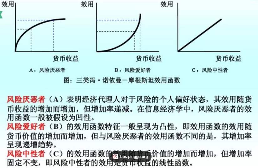 同学你好,中文精读图像纵坐标有点问题,应该是效用,有风险厌恶、风险中性和风险偏好两种表示形式,看清楚横纵坐标。