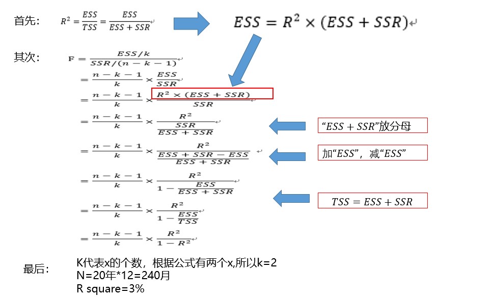 都没有看到ANOVA分析表 SSR和ESS如何得出的呢?