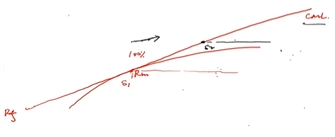 同学你好,原本这个投资者是100%投资在了CML线上的市场组合,现在投资者改变了对于组合的权重,也就是借30%的无风险资产投资了130%的市场组合,其实就是在CML线的右边的borrowing线上,这两个组合都是在CML线上的,我们知道CML线的斜率就是夏普比率,那么同一条直线上的点斜率都是一样的,所以说两个组合的夏普比率是一样的,也就是S1=S2.