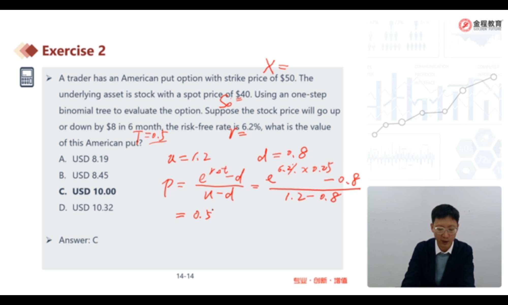 不明白这里为什么是两步二叉树呢?按一步算不等于10啊