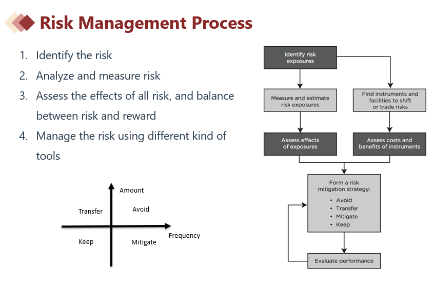这个章节比较乱感觉,层次不明白。avoid.transfer.mitigate.keep,hedging属于哪种?limits和derivatives和hedging是什么关系?感觉是各讲各的,但彼此的联系是割裂的,没讲清楚。
