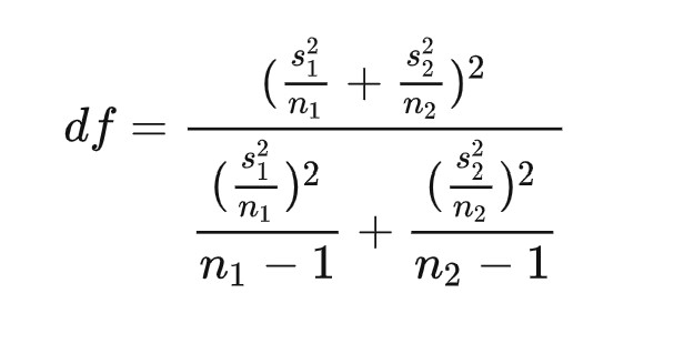 对于您说的两总体方差若未知且不相等,自由度=16.69,不知道是为什么?