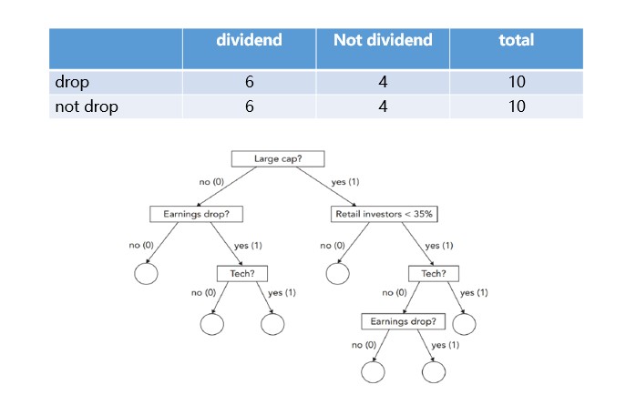 1. the root node是有无支付股息(dividend)