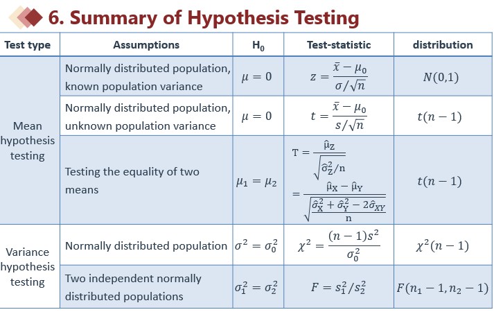 各种假设检验的H0,查什么分布,老师有总结么?太多了