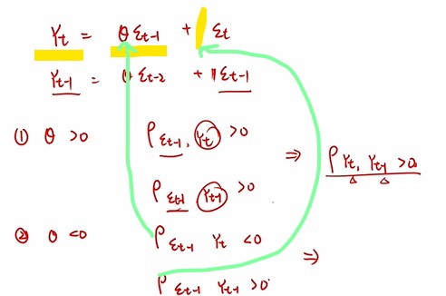 MA模型中,θ<0,ρ为什么<0,是谁和谁的相关系数<0呢,怎么理解,谢谢老师